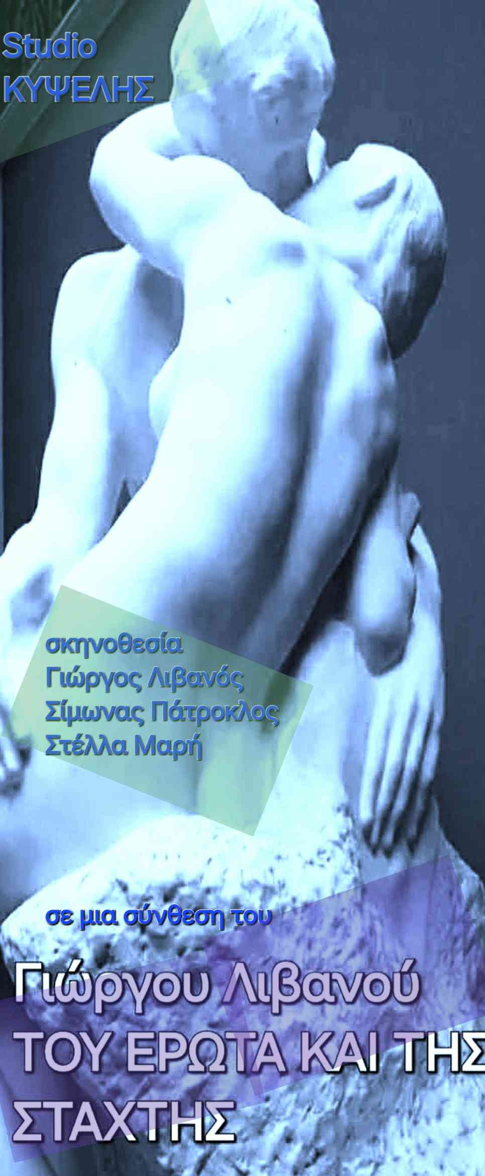 Γιώργου Λιβανού ΤΟΥ ΕΡΩΤΑ ΚΑΙ ΤΗΣ ΣΤΑΧΤΗΣ Vaudeville Τheater μια σκηνική σύνθεση για τον έρωτα σε σκηνοθετική επιμέλεια Γιώργου Λιβανού Σίμωνα Πάτροκλου & της Στέλλας Μαρή ΘΕΑΤΡΙΝΩΝ ΘΕΑΤΕΣ 20 ΧΡΟΝΙΑ. 16 χρόνια Studio Κυψέλης