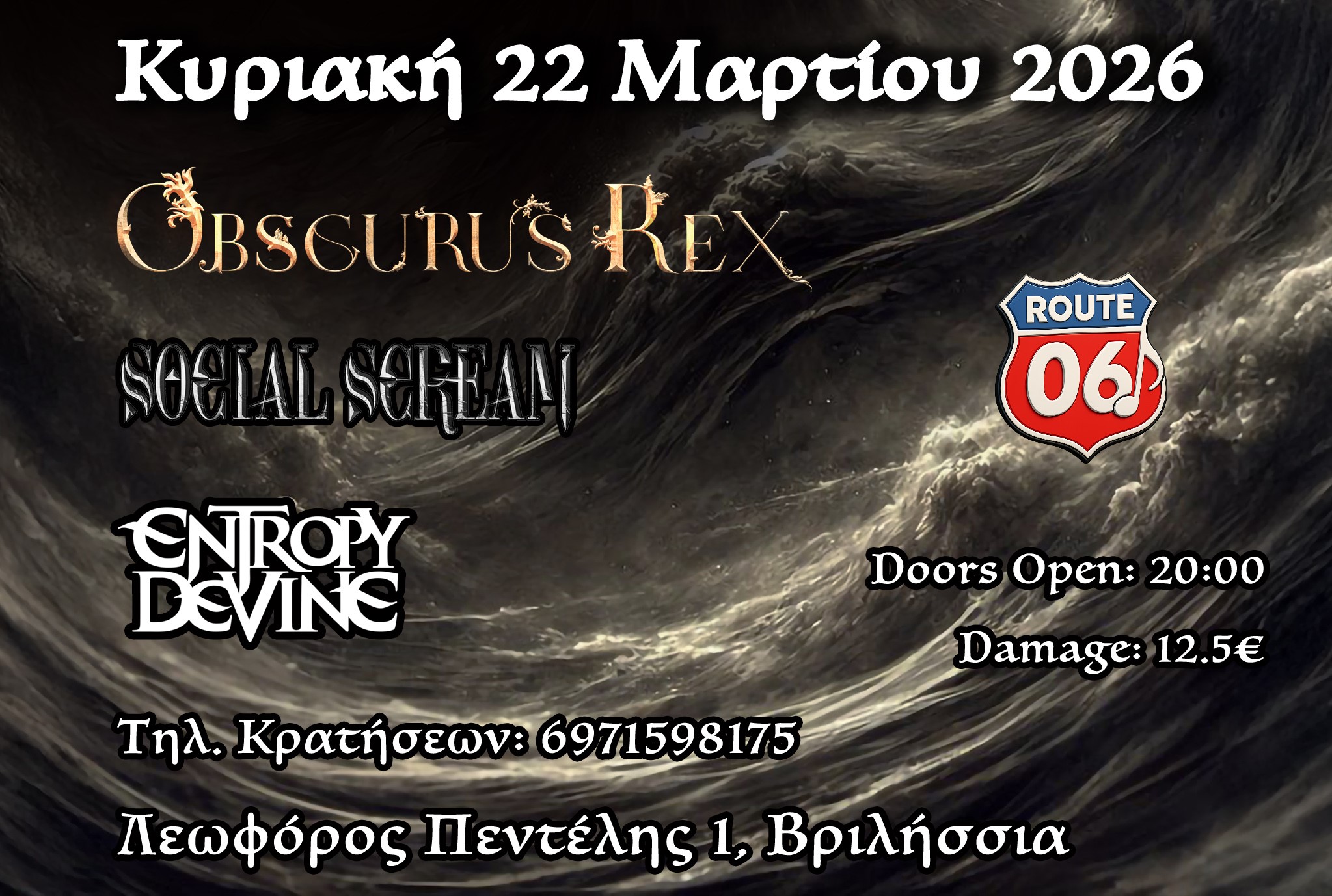 Heavy Metal Night @ Route06 – 22/3: Obscurus Rex, Social Scream, Entropy Devine