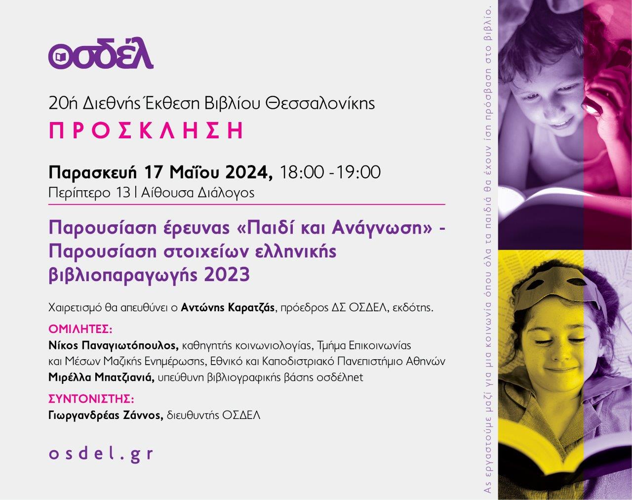 Ο ΟΣΔΕΛ στην 20ή Διεθνή Έκθεση Βιβλίου Θεσσαλονίκης