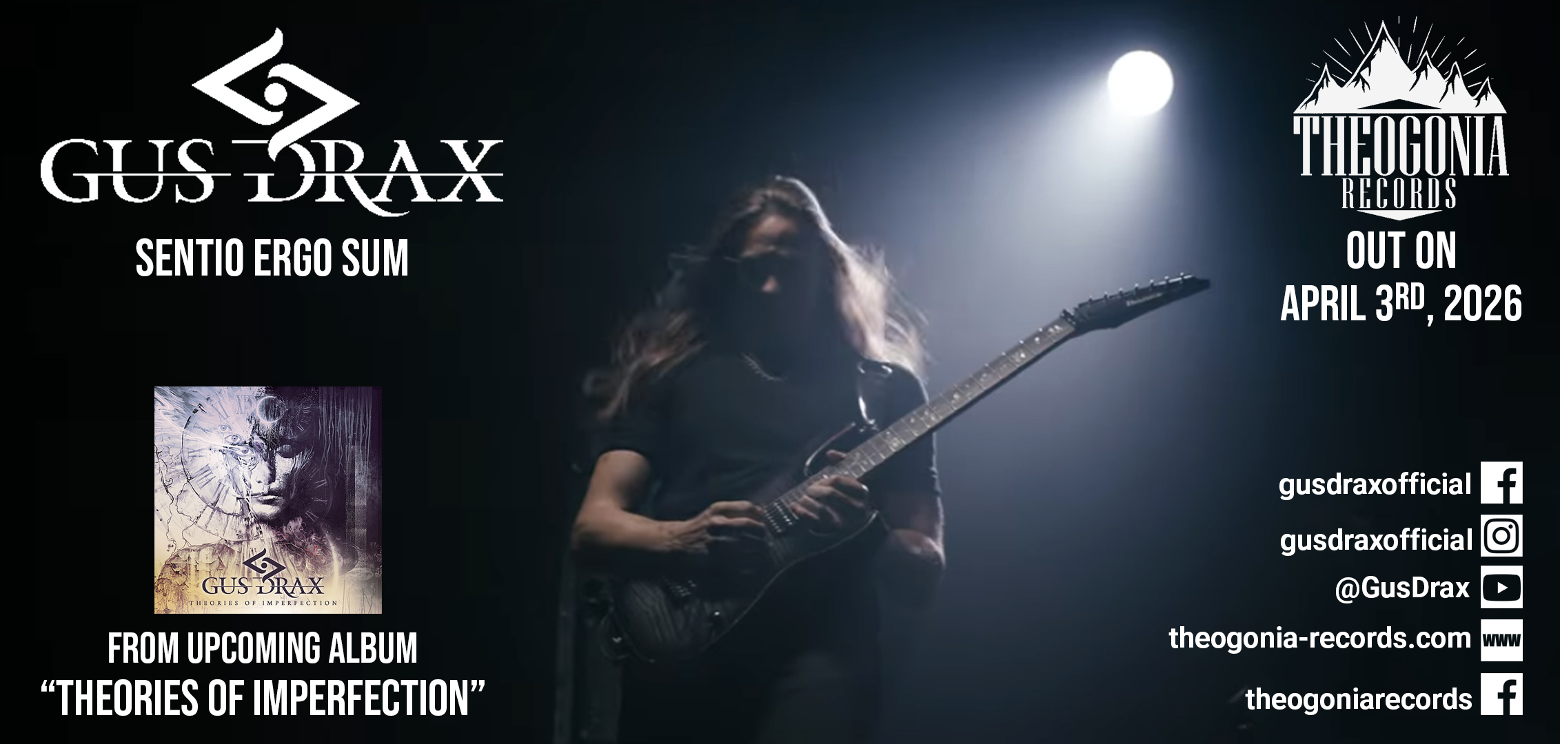 H THEOGONIA RECORDS παρουσιάζει το single “Sentio Ergo Sum”, από το επερχόμενο album του GUS DRAX με τίτλο ” Theories of Imperfection”, κυκλοφορεί 3 Απριλίου 2026